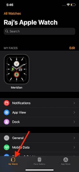 2.现在,确保已选择屏幕左下角的“我的手表”选项卡。