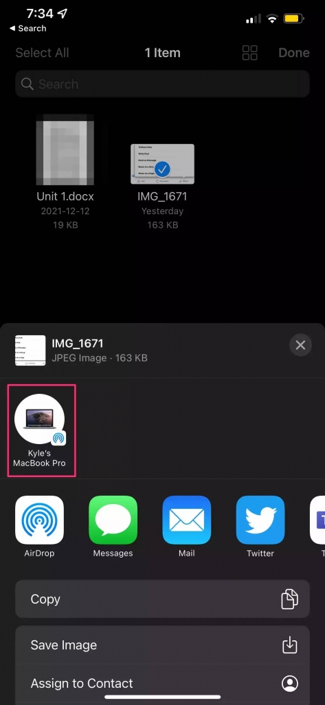 2.如果看到 Mac 图标,请点击它,或者点击AirDrop图标并从后续菜单中选择您的 Mac。然后应该传输文件。