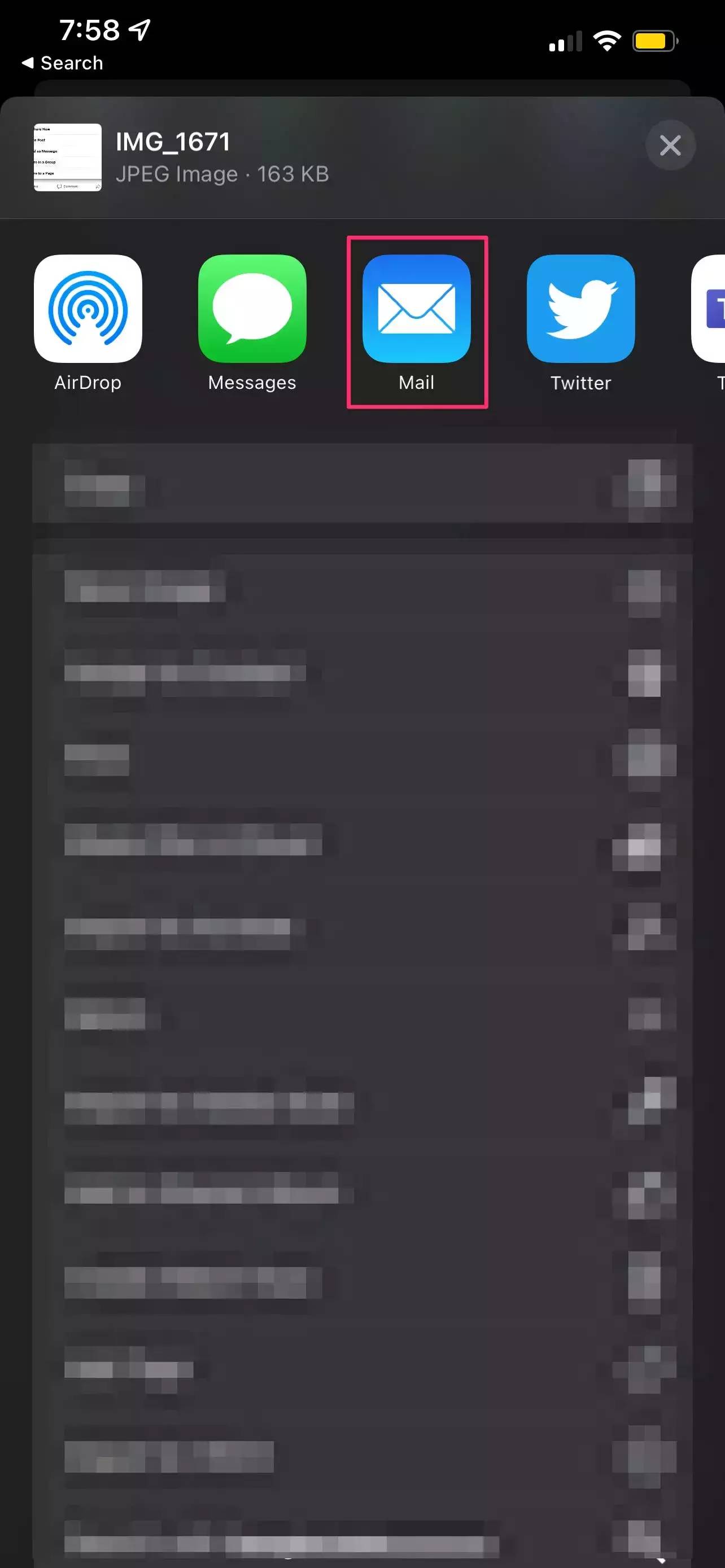5.点击共享按钮并选择您希望如何传输文件。如果它是图片或不同类型文件的另一个选项,则可以选择保存图像。