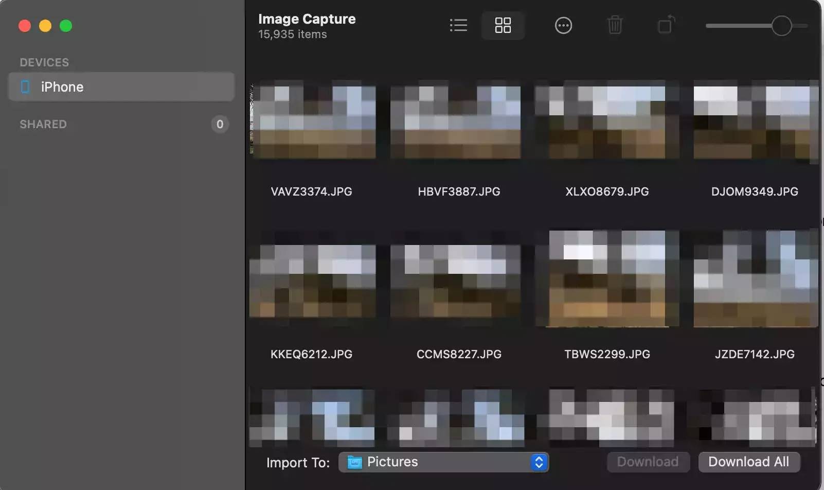 Image Capture 是 Apple 包含在 macOS 中的一个应用程序,它允许将图片从设备(如相机或 iPhone)下载到您的 Mac。您的 iPhone 必须处于唤醒状态并解锁才能使用 Image Capture。