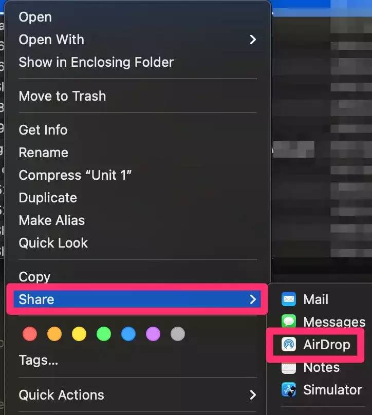 2.在出现的菜单中,将鼠标悬停在共享上并单击AirDrop。