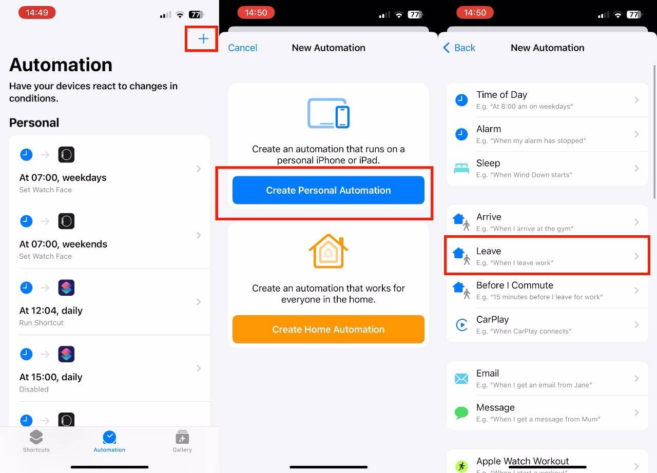 要将其设置为自动发生,您可以使用快捷方式中的自动化功能。对于此示例,您甚至不必实际创建快捷方式。
