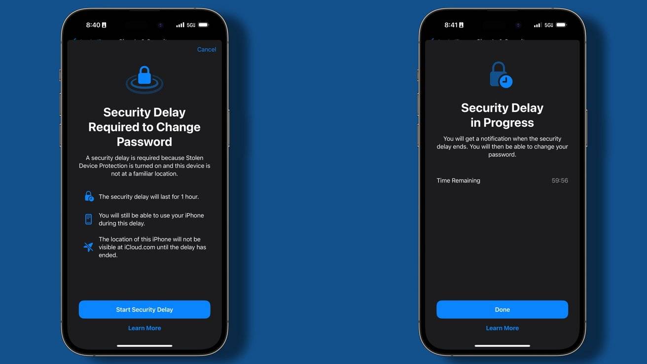 “设备被盗保护”会在访问 Apple ID 或设备设置的关键部分时移除密码回退。当用户尝试更改特别敏感的信息(如 Apple ID 密码)时,它还会实现安全延迟。