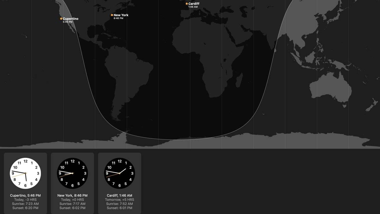 “你在iPhone和iPad上熟悉和喜爱的时钟应用程序现在在Mac上,”Apple 在他们的网站上说。“查看世界各地不同时区的当地时间或设置在特定时间播放自定义警报的闹钟。”