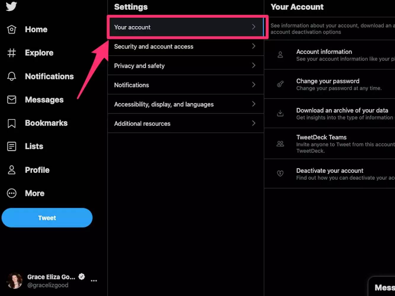 当您删除 Twitter 帐户时,您的用户名也会随之删除。如果您想重复使用您的用户名,那么在停用您的帐户之前,请将您的用户名更改为您不介意被删除的内容。