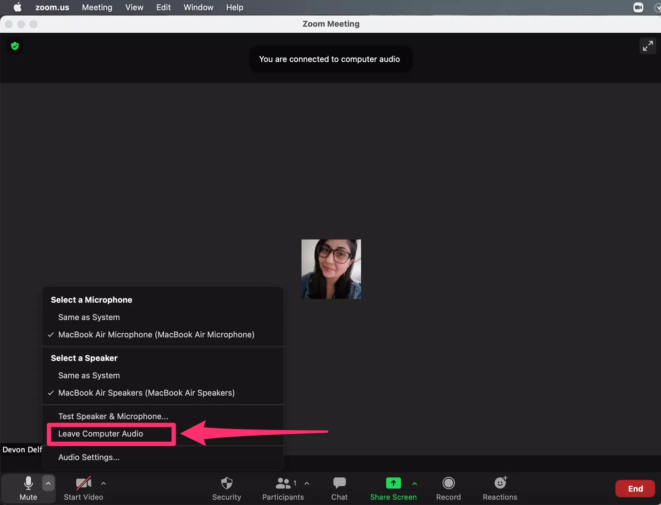 - 参与者可能同时使用他们的电话和计算机音频进行连接(在这种情况下,他们应该在计算机上取消加入会议)。
