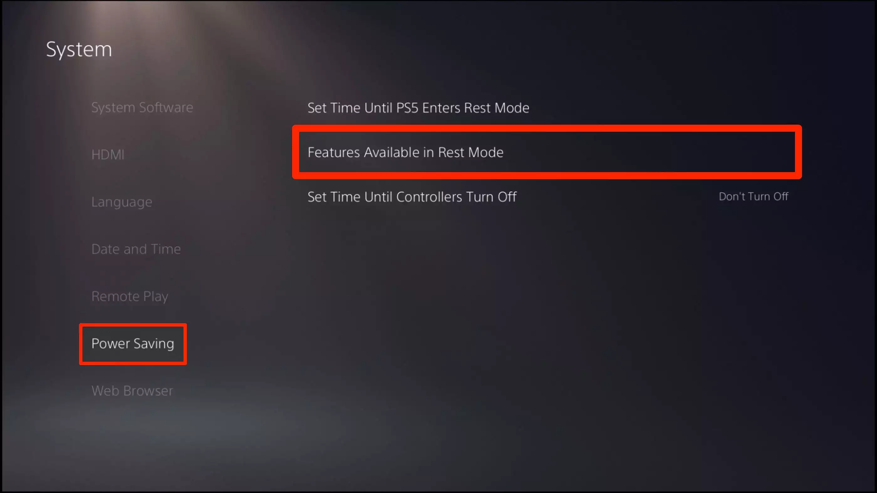 4.在左侧边栏中,向下滚动并选择省电,然后选择在休息模式下可用的功能。