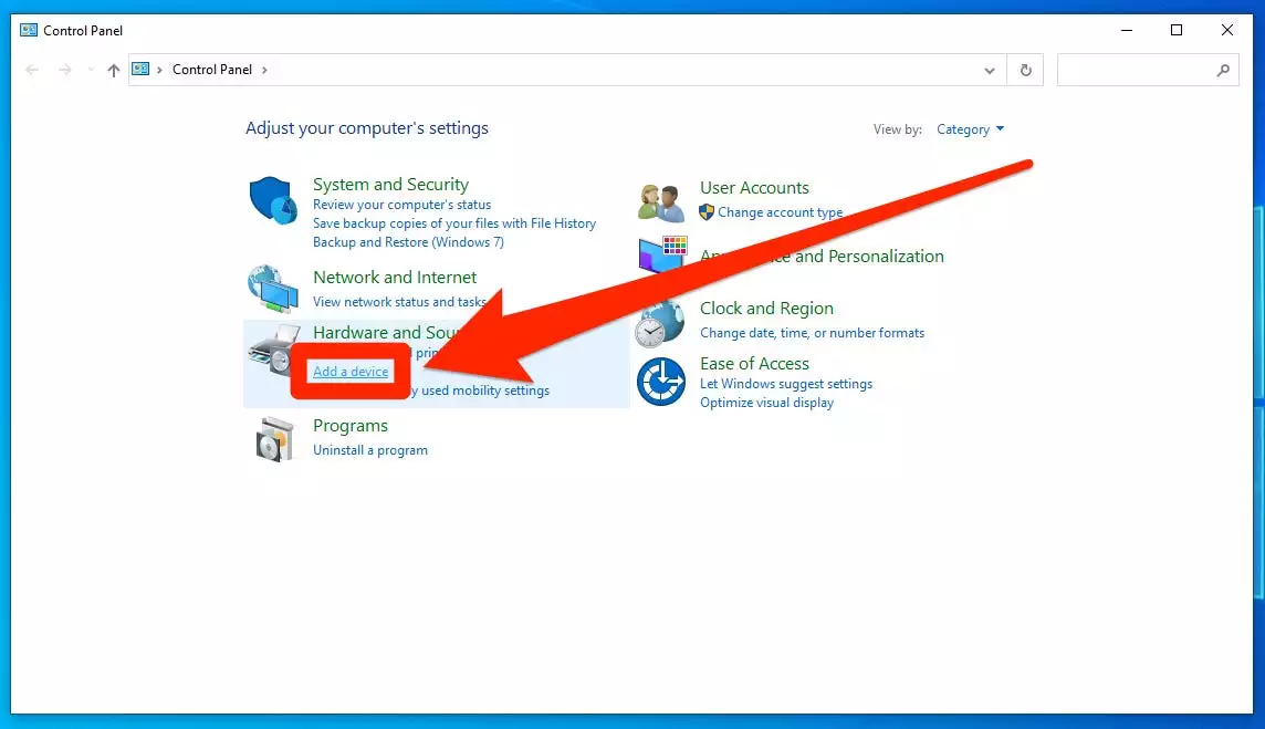 1.打开控制面板并选择添加设备。