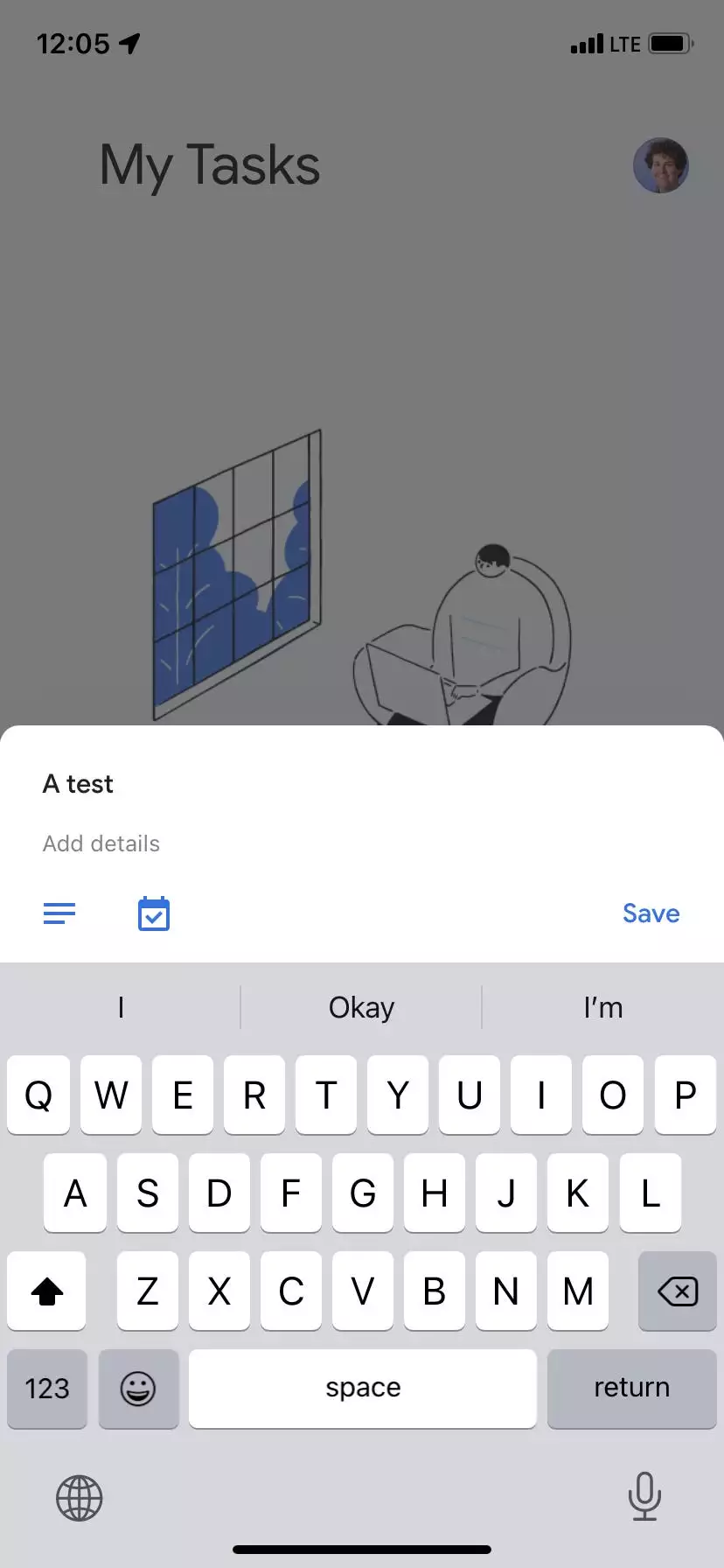 2.键入以给您的任务命名。您还可以点击其下方的三行以添加更多详细信息,并点击日历图标将任务与日期和时间联系起来。
