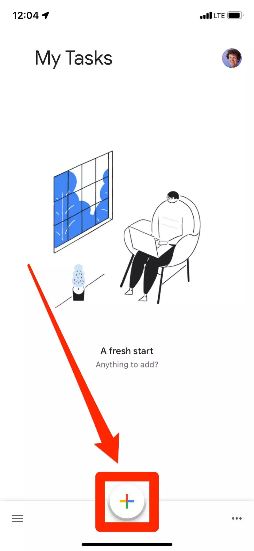 1.打开 Google Tasks 应用程序并点击屏幕底部的加号图标。