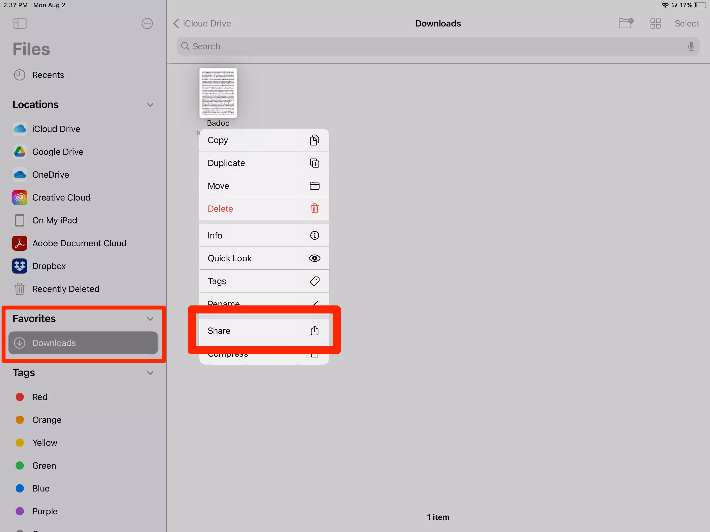 2.画笔将保存到文件应用程序中。打开此应用程序并找到您下载的文件 – 它们可能位于“下载”部分。如果它们位于 .ZIP 文件中,请先点击 .ZIP 文件以提取画笔。