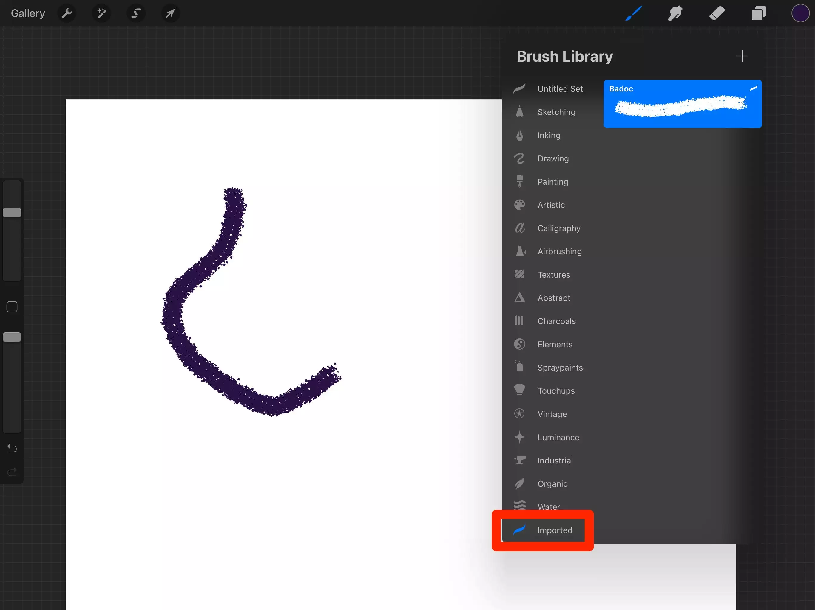 您现在可以在画笔菜单的“导入”部分中找到它。