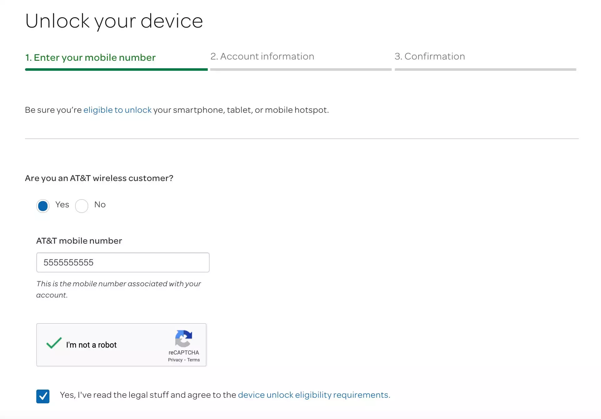 快速提示:如果您目前不是 AT&T 客户,但想通过以下方式注册 AT&T解锁手机,在此处选择否,然后输入您手机的 IMEI 号码。
