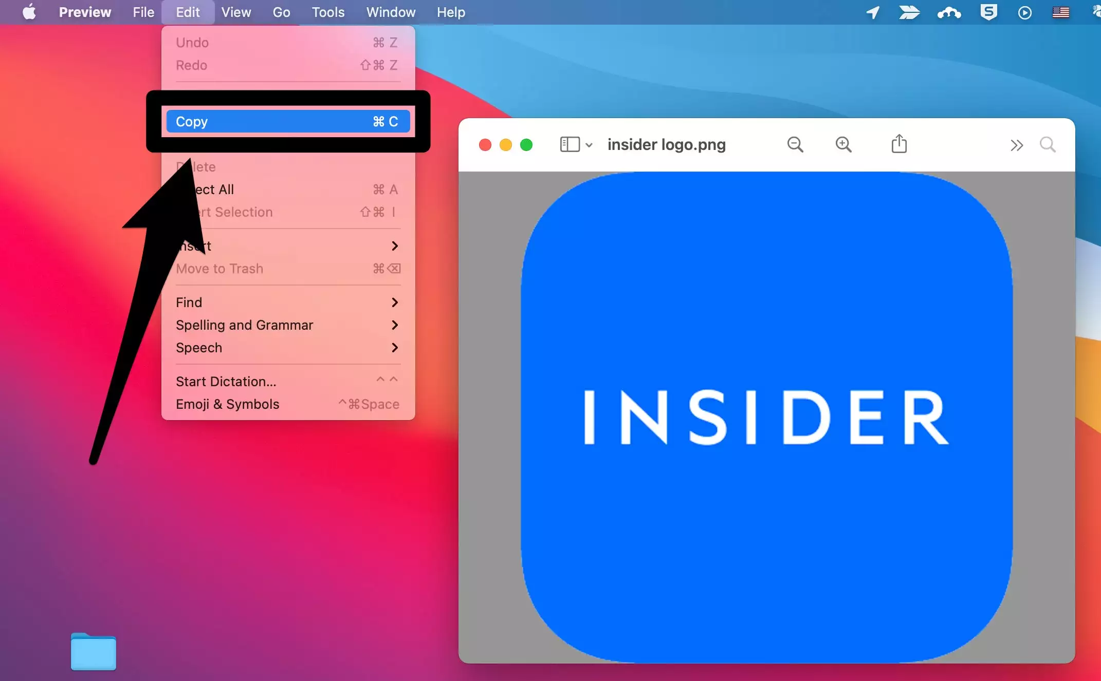 2.将图像复制到剪贴板。您几乎总是可以通过单击屏幕顶部菜单栏中的编辑,然后单击复制来执行此操作。或者,尝试右键单击图片,然后选择“复制”。