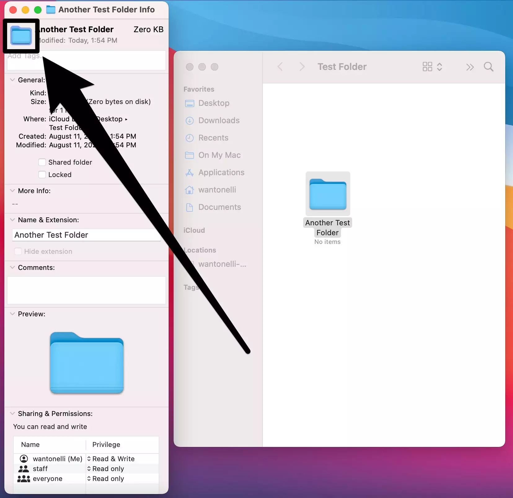 如果您想将图标更改回默认值,请打开信息窗口并再次选择该图标,然后按Command + X。
