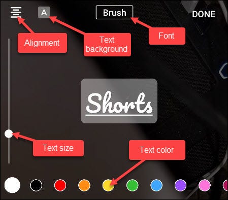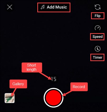 将出现 Shorts 录制屏幕,这里有许多选项: