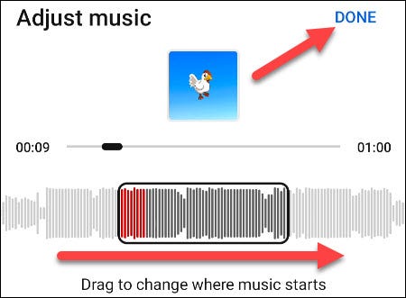 拖动该框以选择要使用的歌曲部分。完成后点击“完成”。
