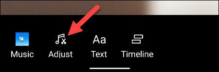 最后要做的是编辑时间线中的音乐和文本位置。如果您添加了音乐,请轻点“调整”。