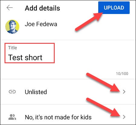 最后一步是为 Short 命名,选择可见性,然后选择受众。完成后,点击“上传”。