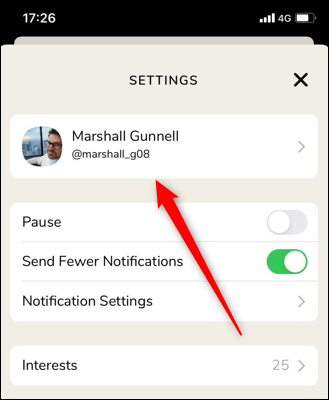 要停用您的帐户,首先在您的智能手机上打开该应用程序,然后点击屏幕右上角的个人资料图片。