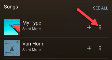 接下来,点击歌曲、专辑或播放列表旁边的三点图标。