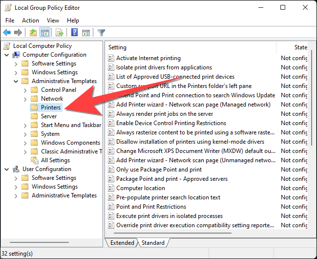 如果您需要使用打印机,则需要将其连接到 Windows 计算机以进行本地打印。但首先,您需要使用组策略编辑器禁用禁止所有传入远程连接的打印机策略。
