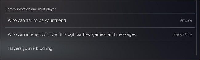 - 谁可以通过聚会、游戏和消息与您互动:如果您想在 PlayStation 5 上完全关闭,您可以完全关闭玩游戏、受邀参加聚会以及与他人接收消息的功能。三个选项包括“没有人”、“仅限朋友”和“任何人”。如果您不希望来自在线玩家的随机聚会邀请,但仍想与您的朋友互动,“仅限朋友”将是一个不错的选择。