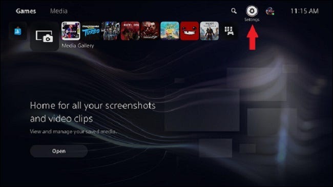 要访问您的隐私设置,首先导航到 PS5 的主屏幕并选择右上角的“设置”齿轮符号。它位于您的个人资料图片的左侧。
