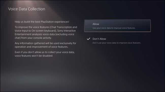 最后,“语音数据收集”会听取有关聊天转录和语音输入到屏幕键盘等功能的帮助。您应该放心,它不会考虑您与其他玩家之间的语音聊天。您可以在“允许”和“不允许”之间切换。