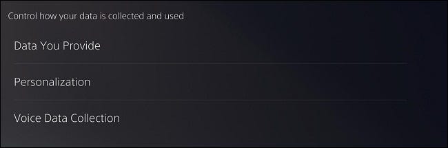 如果您退出“查看和自定义您的隐私设置”菜单,您将返回“隐私”菜单。切换到这个特定部分,详细介绍 PlayStation 可以从您那里收集哪些数据。
