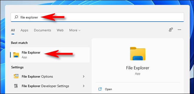 要将文件资源管理器图标放在任务栏上,您必须先运行它。要快速执行此操作,请按键盘上的 Windows+e。或者,您可以打开“开始”,键入“文件资源管理器”,然后单击“文件资源管理器”图标或按 Enter。