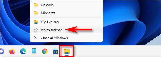 之后,文件资源管理器图标将保留在任务栏上,即使您关闭文件资源管理器窗口也是如此。如果您愿意,可以单击并拖动任务栏上的图标来重新定位它。
