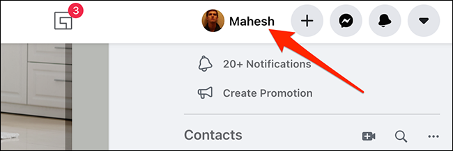 当 Facebook 加载时,点击网站右上角的个人资料图标。