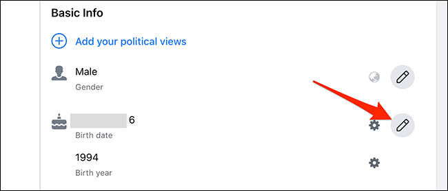 向下滚动右侧窗格到“基本信息”部分。在这里,在您的生日旁边,单击铅笔图标以编辑您的生日。