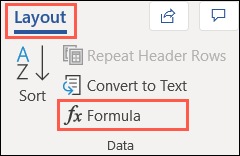 然后,前往出现的布局选项卡。移动到功能区的右侧,然后单击“数据”部分中的“公式”。