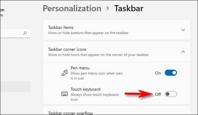任务栏中,将“触摸键盘”旁边的开关切换到“关闭”。” width=”650″ height=”378″ data-mce-src=”https://www.howtogeek.com/wp-content/uploads/2021/08/win11_touch_keyboard_off.jpg?trim=1,1&bg-color=000&pad=1,1″ data-mce-style=”box-sizing: inherit; border: 0px; height: auto; max-width: 650px;”>