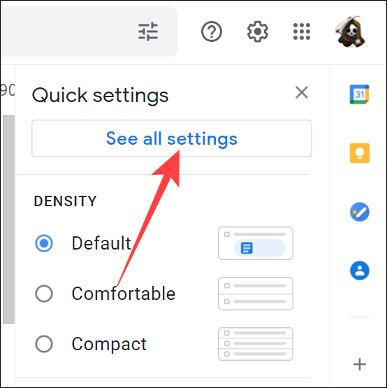 首先,打开Gmail 网站,登录您的 Gmail 帐户,然后单击右上角的齿轮图标。