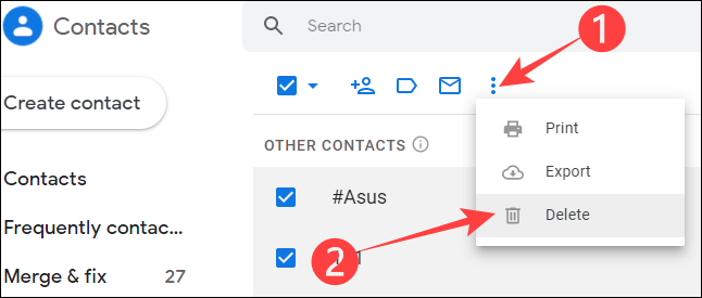 接下来,单击顶部的三个垂直点,然后选择“删除”以删除不需要的联系人。