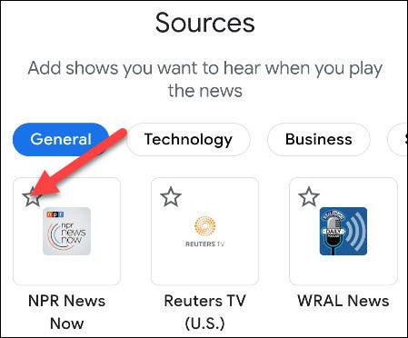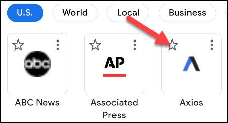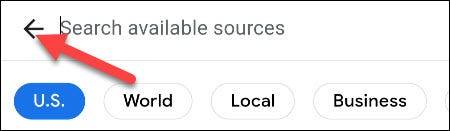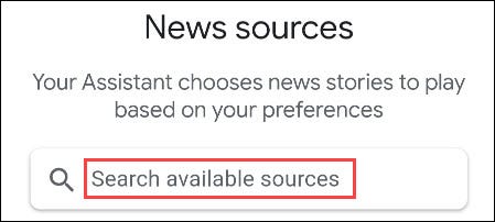如果您选择“您的新闻更新”,请使用搜索栏查找您要添加的任何特定新闻来源。