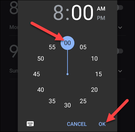 选择闹钟响起的时间(确保检查上午或下午。)并点击“确定”。