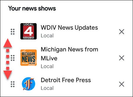 最后,您可以抓住节目标题旁边的手柄并向上或向下拖动它们以自定义它们的播放顺序。