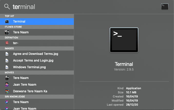 - 按命令⌘+空格键打开 Spotlight 并搜索终端应用程序。