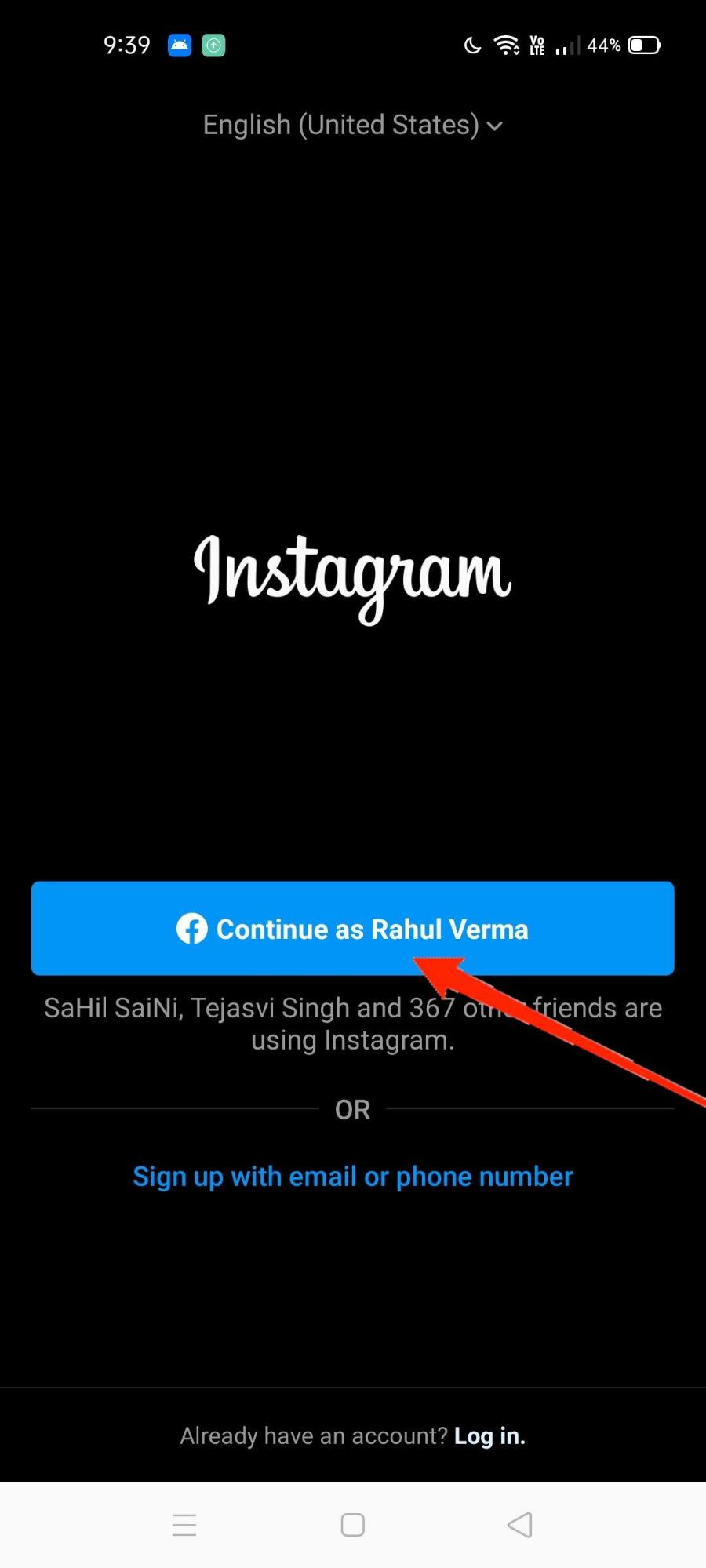 - 转到登录屏幕并选择继续使用您的 FB 帐户。