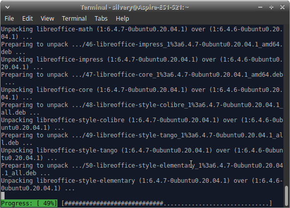 - 终端将开始下载更新并安装它们。