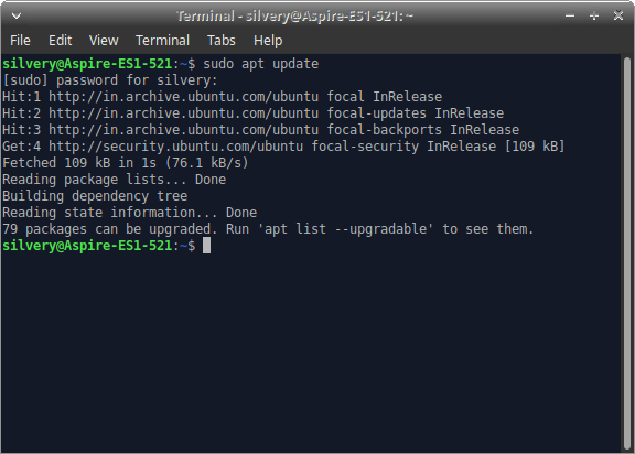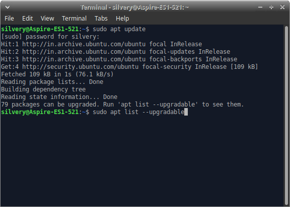 - 现在,您可以在屏幕上看到信息。就我而言,我有 79 个软件包需要更新。