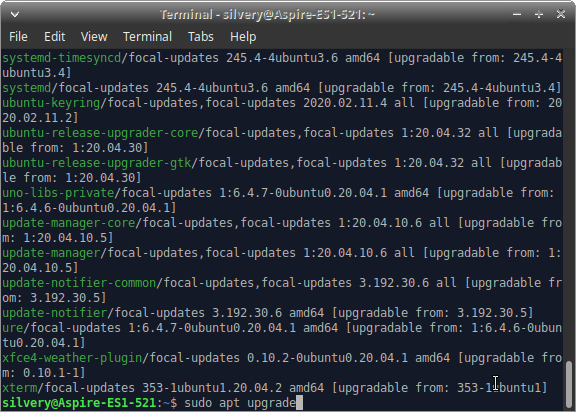 - 输入“ sudo apt upgrade ”并按回车键。