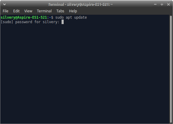 您可以使用通用快捷键Ctrl + Alt + T来启动终端。 - 输入“ sudo apt update ”并按回车键。