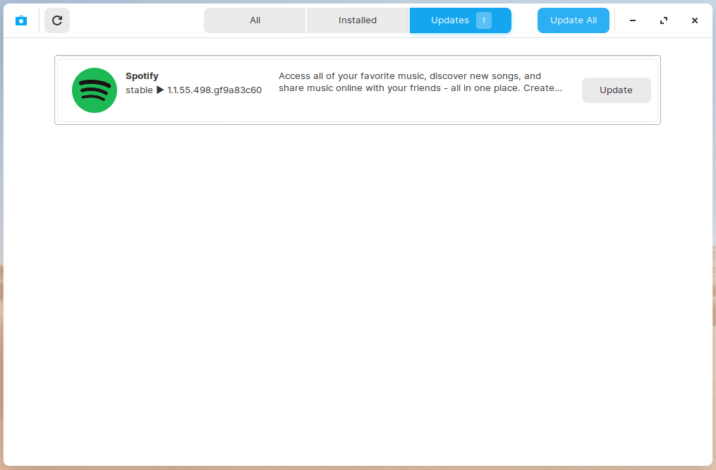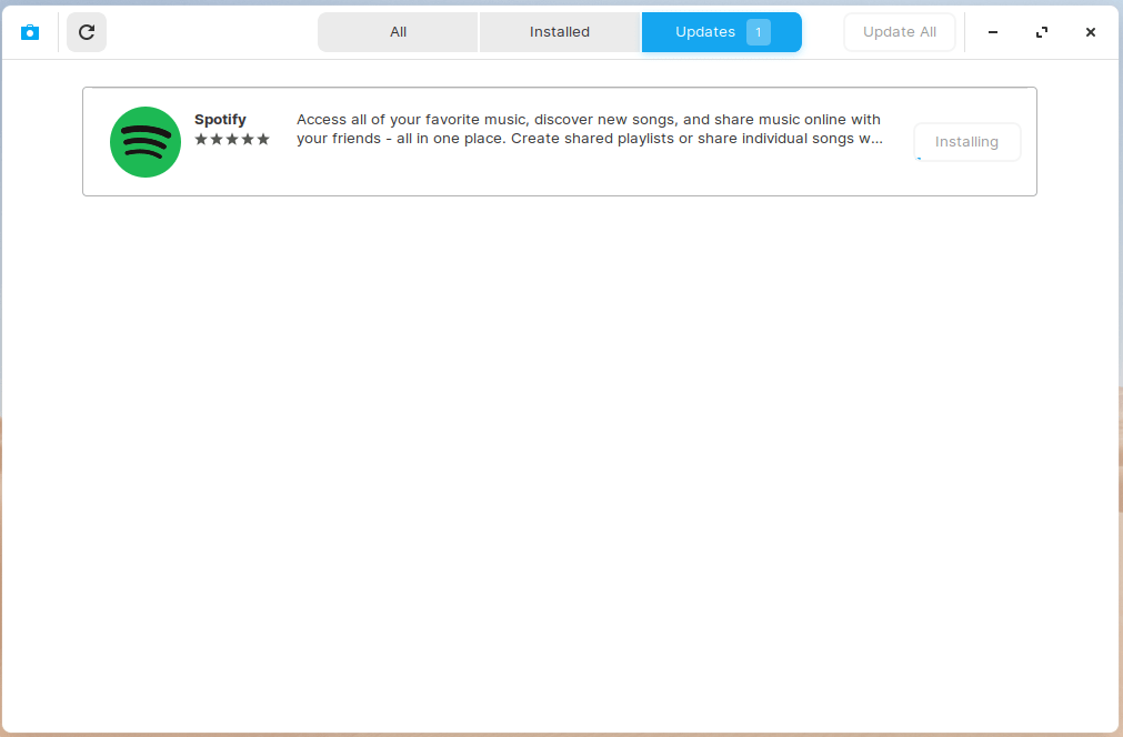 我不喜欢软件中心方法,因为商店应用程序不稳定且无法正常运行。Spotify 程序已正确更新,但出现错误。