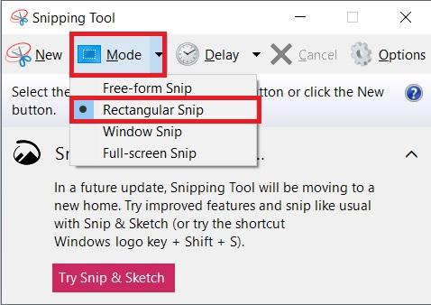 - 打开工具,您需要从模式中选择“矩形剪切”。