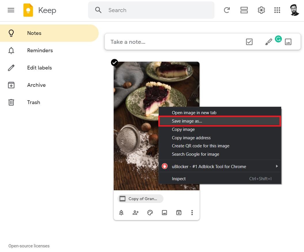 - 现在,打开 Google Keep,复制的图像将显示在您的 Google Keep 中。